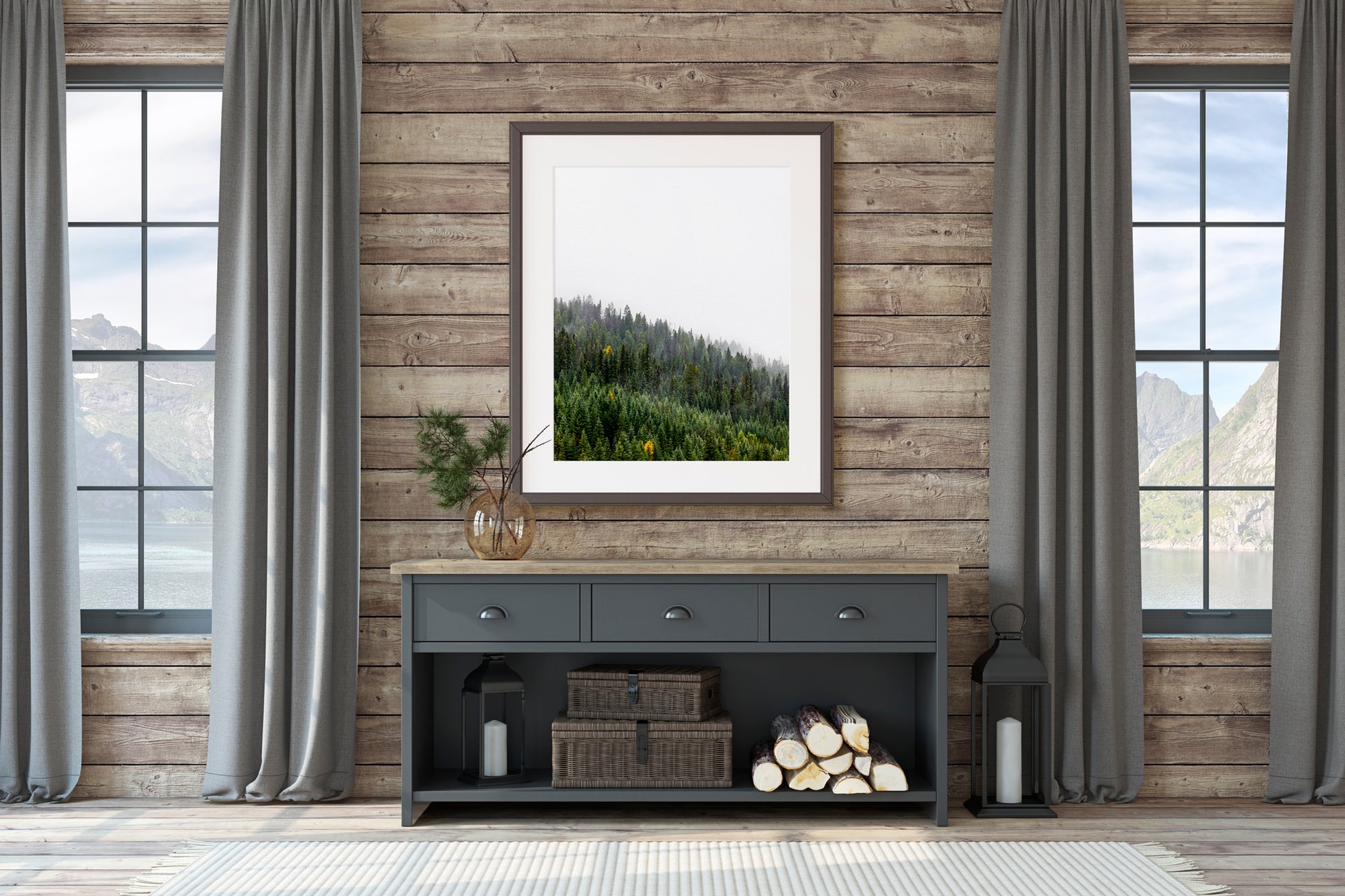As a rule of thumb, the print should occupy between two-thirds to three-fourths of the available wall space. Measure your space and then multiply each dimension by 0.6 and 0.75 to get an idea of what fits.
