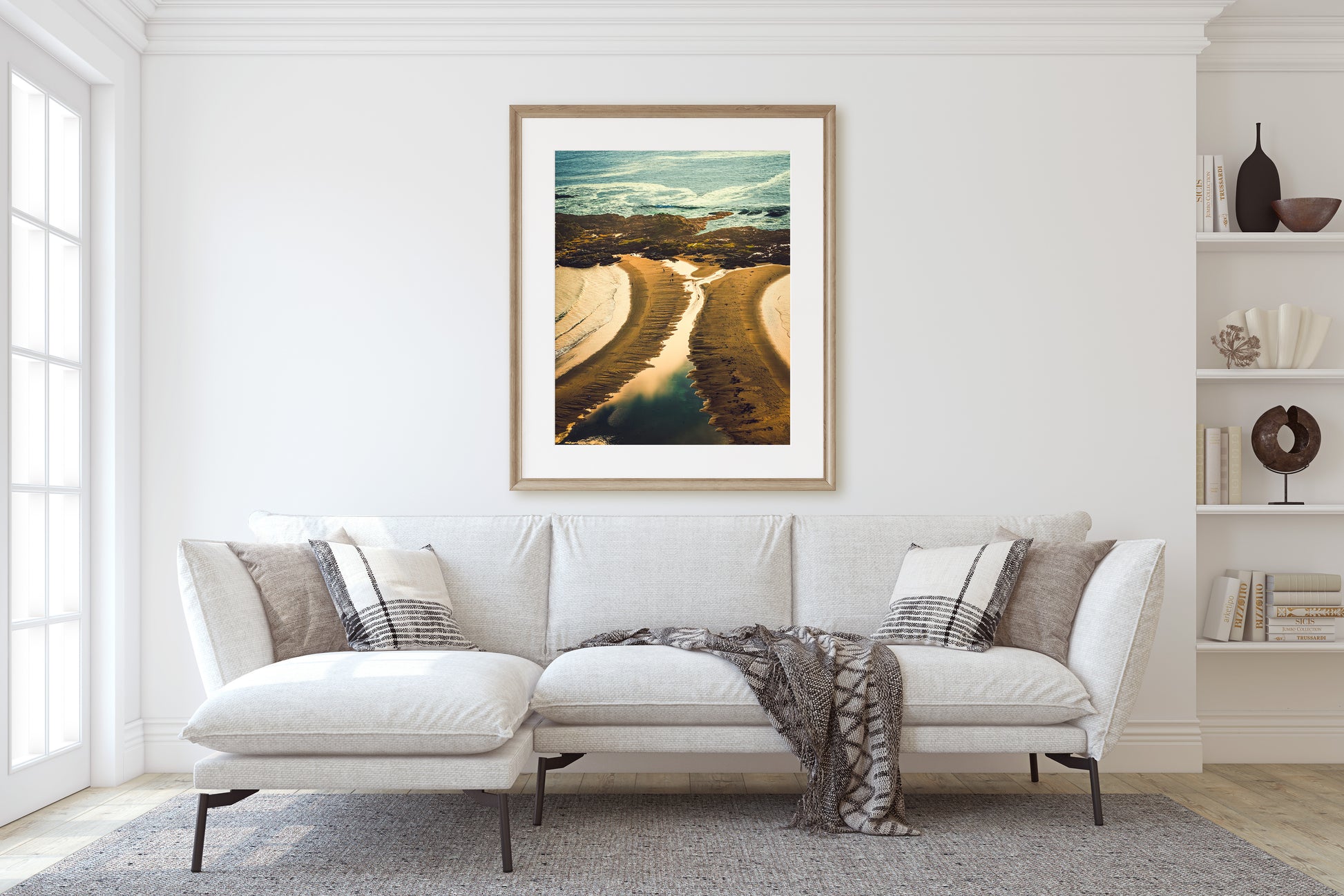 As a rule of thumb, the print should occupy between two-thirds to three-fourths of the available wall space. Measure your space and then multiply each dimension by 0.6 and 0.75 to get an idea of what fits.
