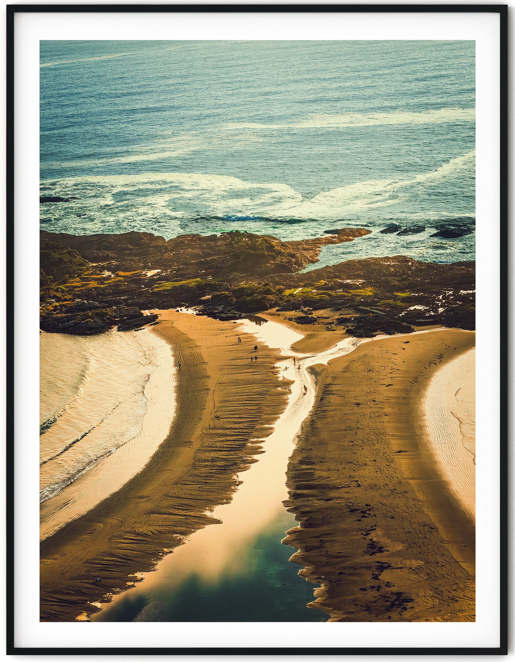 Flying over Tofino, I caught this unexpected moment—the tombolo stretching from Chesterman Beach to Frank Island, curving toward the vast, endless ocean. The golden light reflecting in the tidal pools, the soft textures of the sand, the gentle pull of the waves—it all feels like an invitation. A pathway not just to the water, but to something bigger. This image has a way of drawing me in, time and time again.